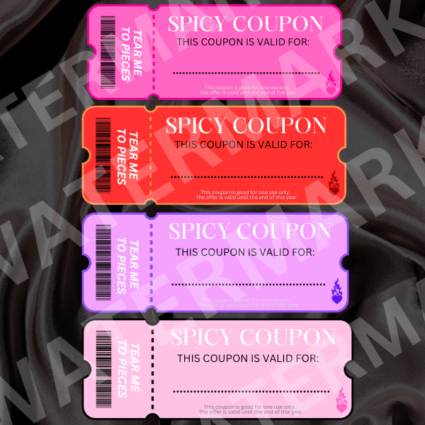 - 1 Page PDF Download of Spicy Coupons (you buy once and can print it as many times as you'd like!)